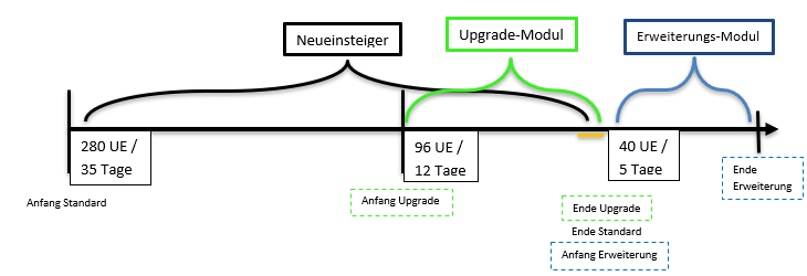 Für Einsteiger beginnt die nächste Fortbildung voraussichtlich am 12.02.2026. Das Upgrade Modul beginnt voraussichtlich am 10.04.2026. Der Unterricht findet immer Montag, Donnerstag und Freitag Uhr statt.