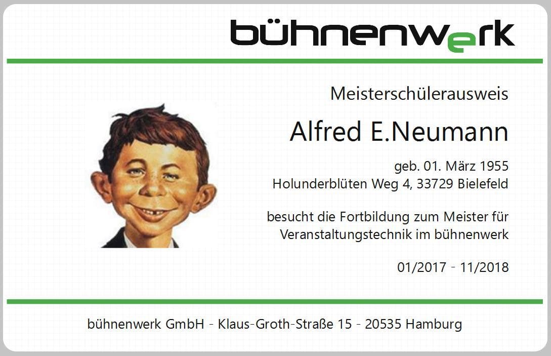 Der bühnenwerk Meisterschülerausweis