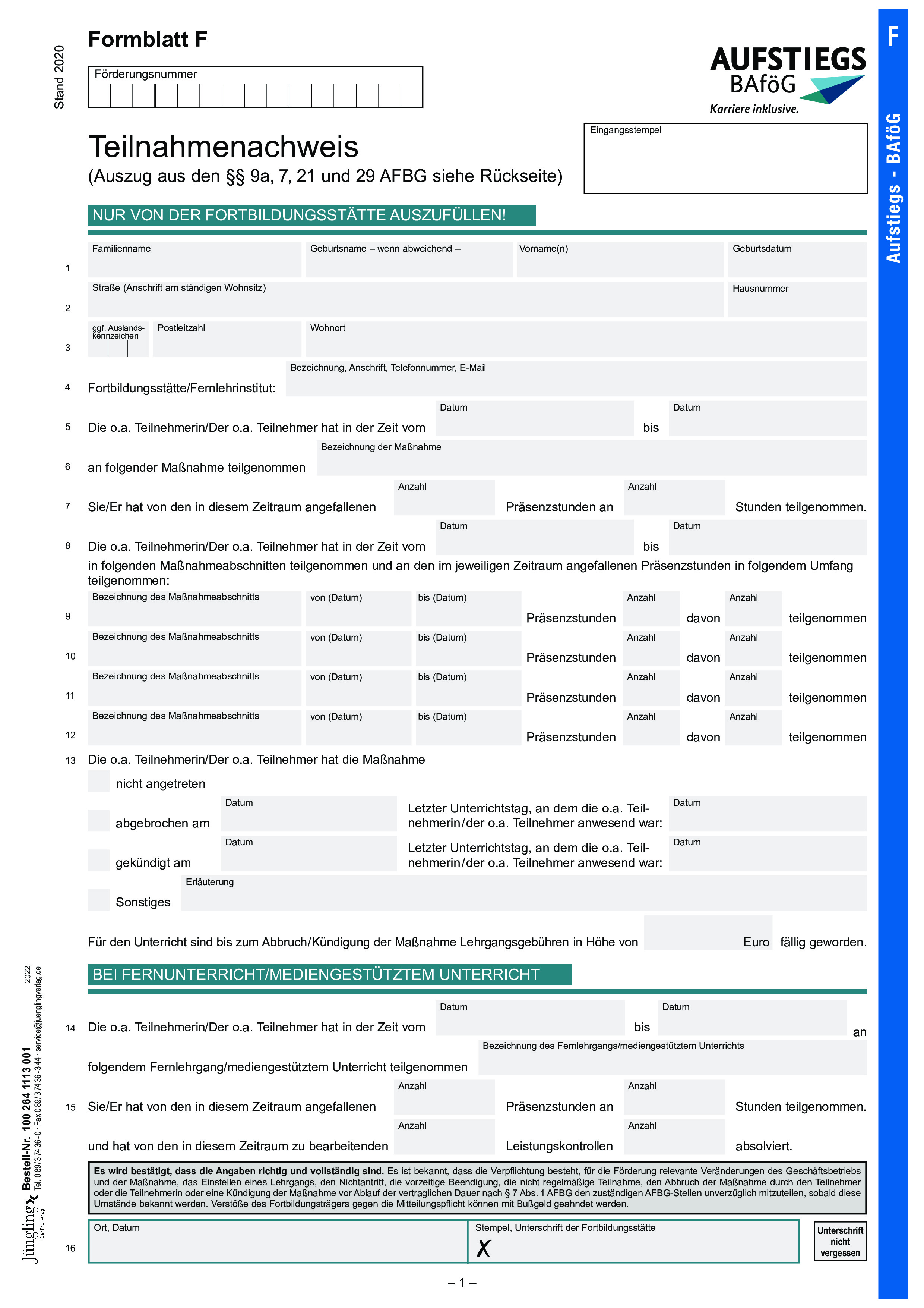 Teilnahmenachweis (Formblatt F)